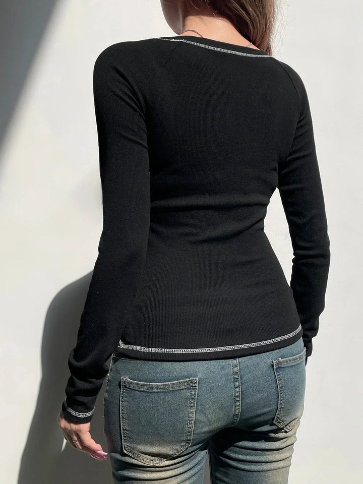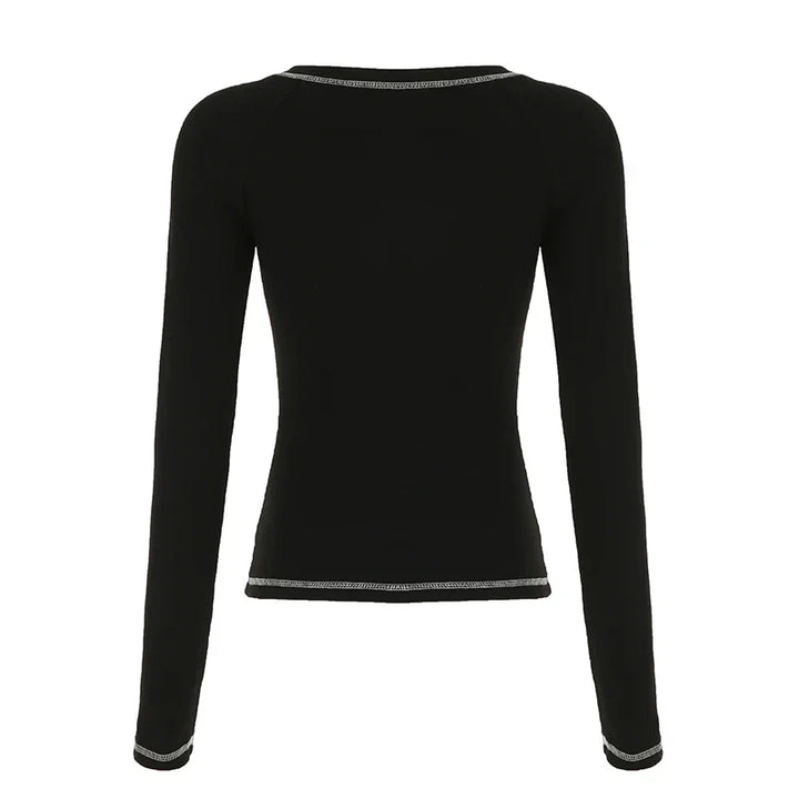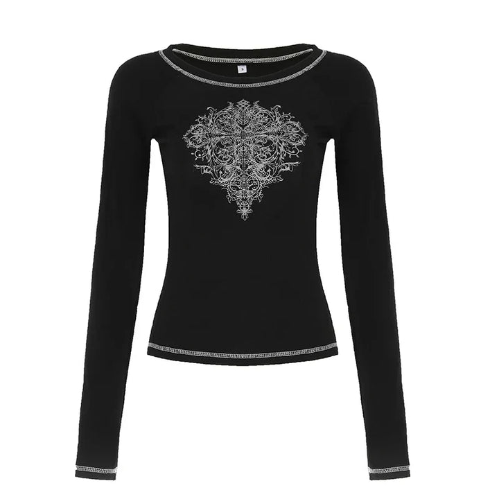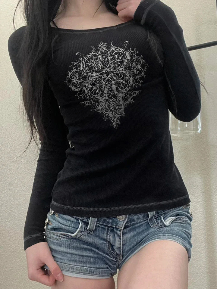 Y2K Slim Fit Dark Print O-Neck T-Shirt